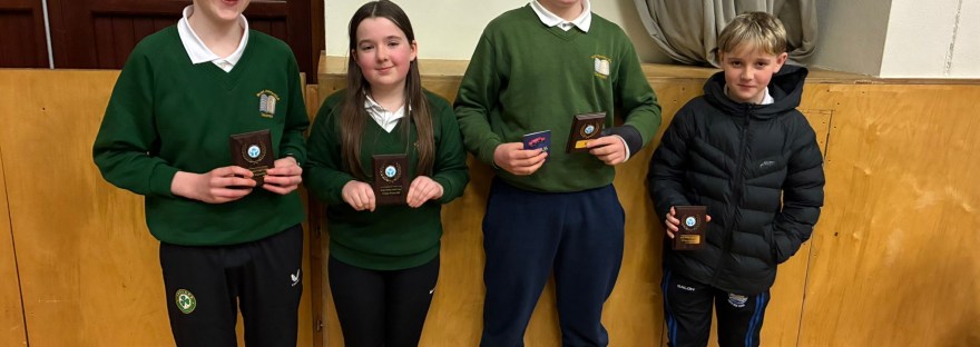 Well done to our two quiz teams who took part in the Credit Union Quiz in Fanad on Friday night. A special congratulations to our U13 team, who put in an outstanding performance and were worthy winners on the night. The team was made up of Conor, Cormac F, Cormac D and Katie. They showed… Continue reading Credit Union Quiz
