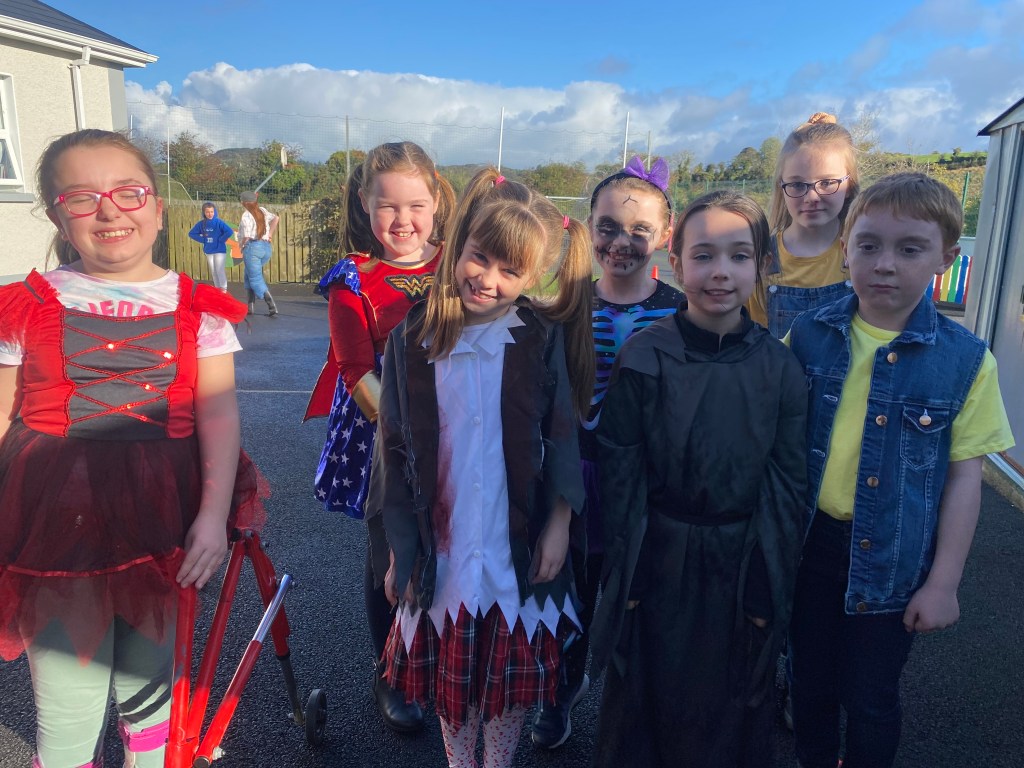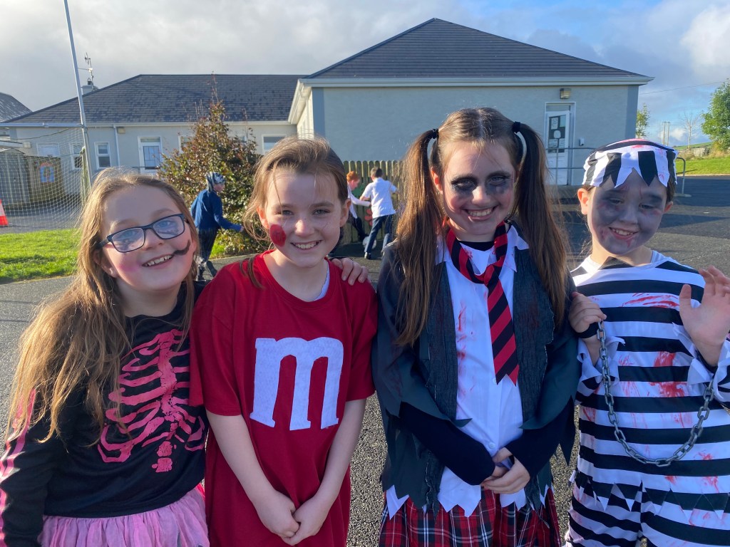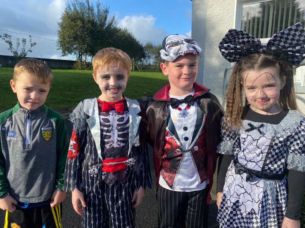 It got a bit spooky in Drumman today with all the scary costumes. All the boys & girls made a huge effort raising money for St. Vincent de Paul by dressing up for Halloween.