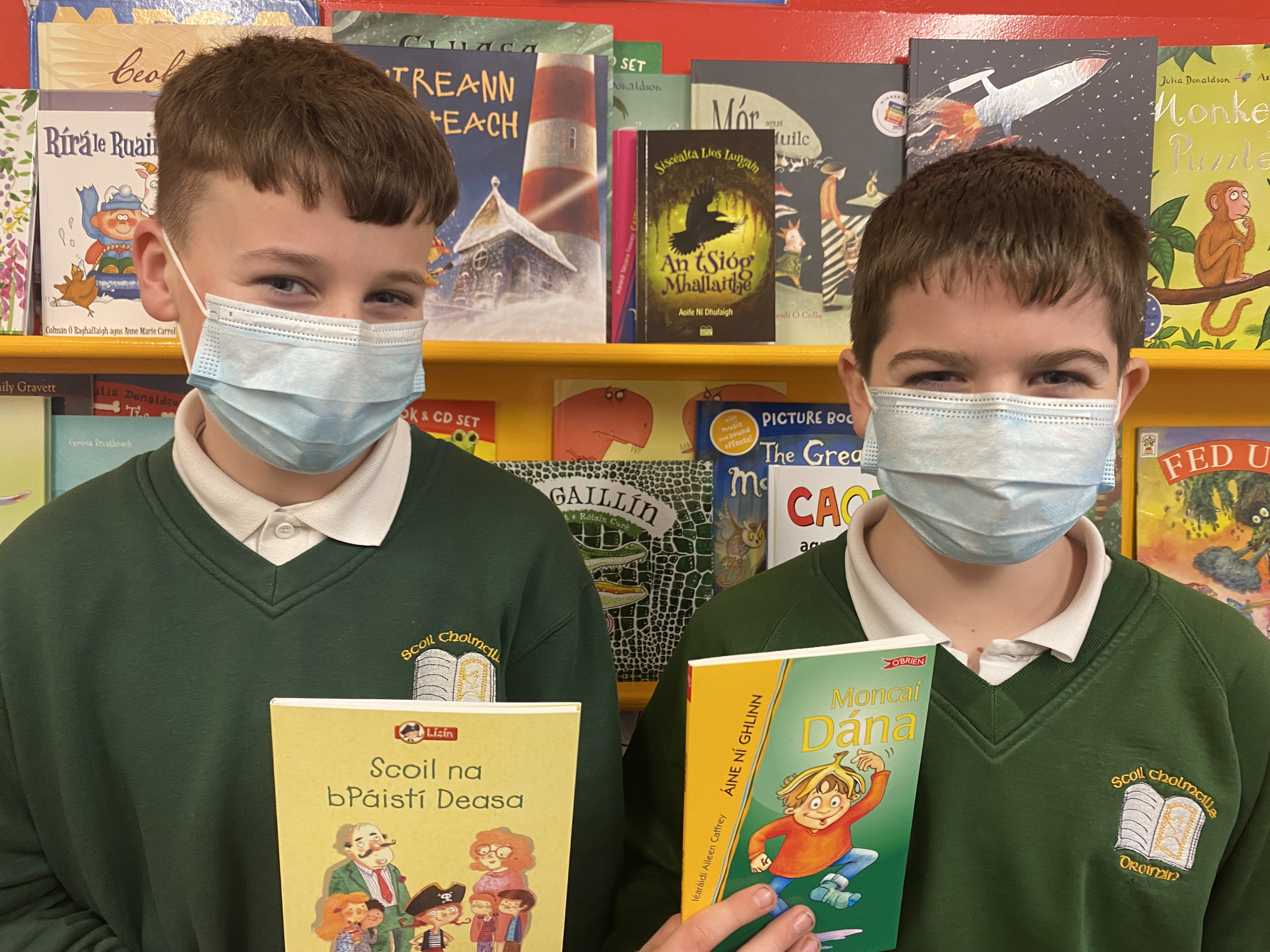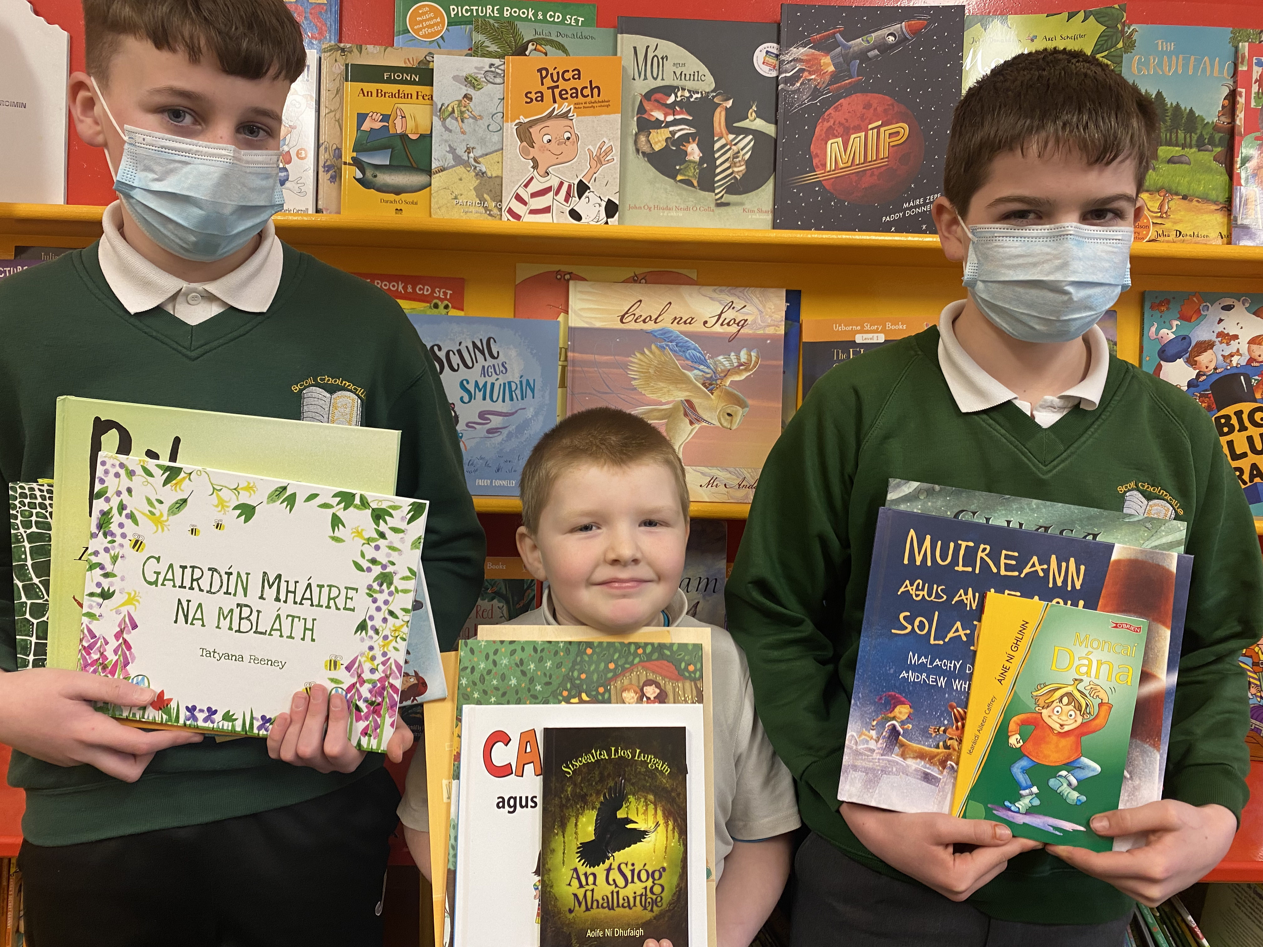 We won a box of 25 excellent Irish language books chosen by Laureate na nÓg Áine Ní Ghlinn. Her overall aim is to encourage children to read as Gaeilge for pleasure.