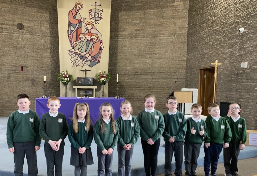Today our Second Class pupils received the sacrament of First Penance. We are very proud of them as they listened and responded so well to Fr. Mc Brearty.
