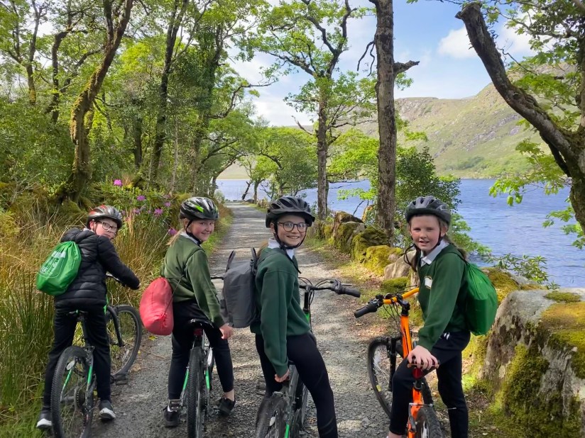 The sun shone the entire day as the boys and girls discovered the joy of cycling in nature. They explored the beautiful scenery of Glenveagh as they rode their bikes all the way to the waterfall, cycling 14km in total!