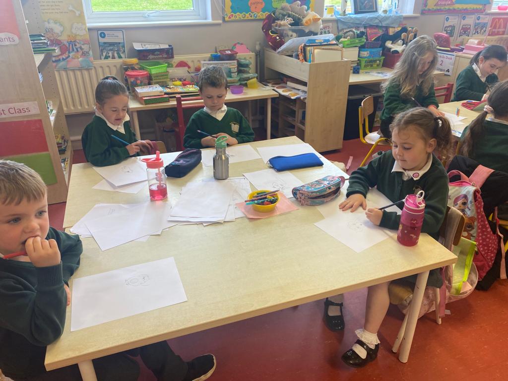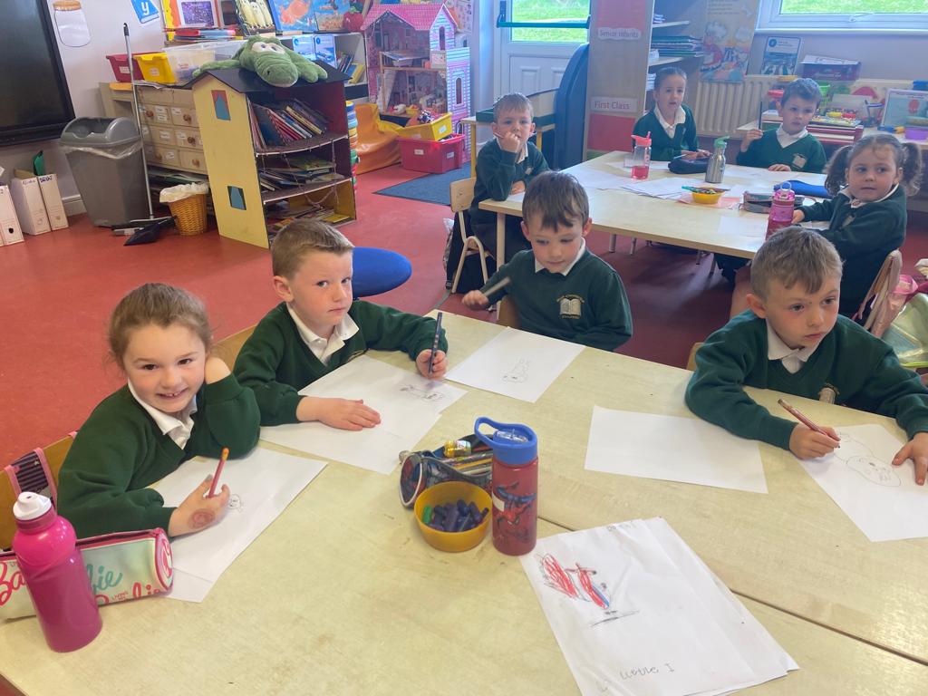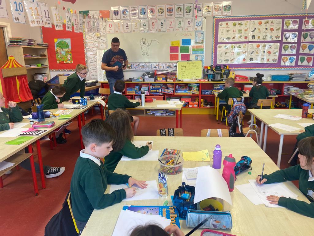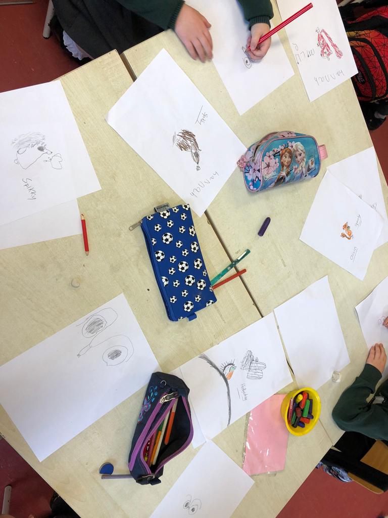 The children have been drawing with Mick O’Toonz during Creative Week. He has been going around the classes and showing them how to draw different woodland characters.