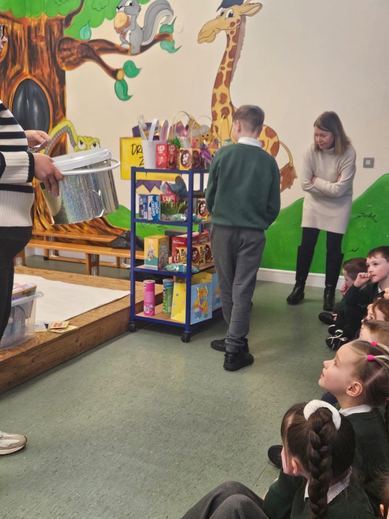 We had lots of excitement in school this morning for our Easter raffle. A big thanks to everyone who bought tickets.