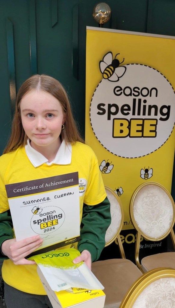 Well done to Summer who competed in Donegal’s Spelling Bee Final today in Bundoran.
