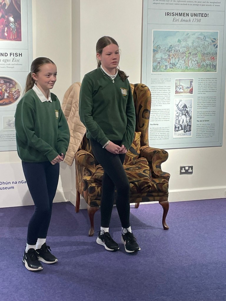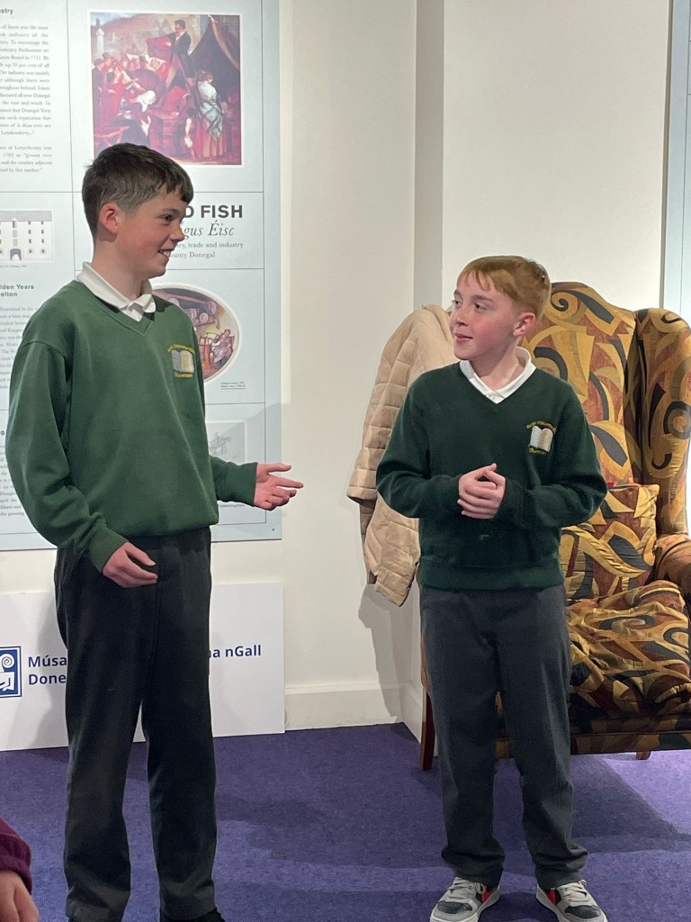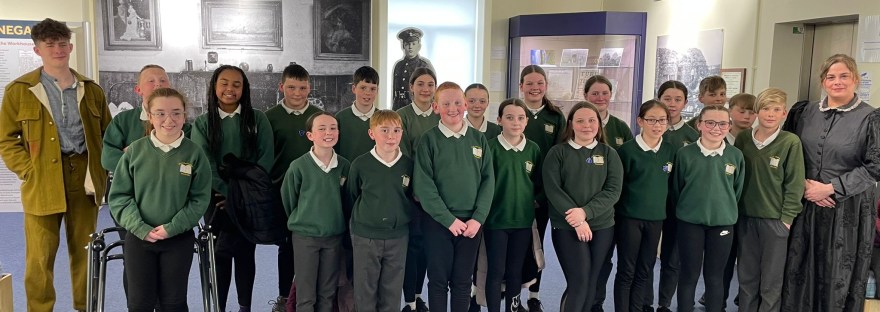 5th & 6th students visited Donegal County Museum today to explore workhouse times. Upon arrival they were welcomed by characters from the workhouse; the matron and Francis.
