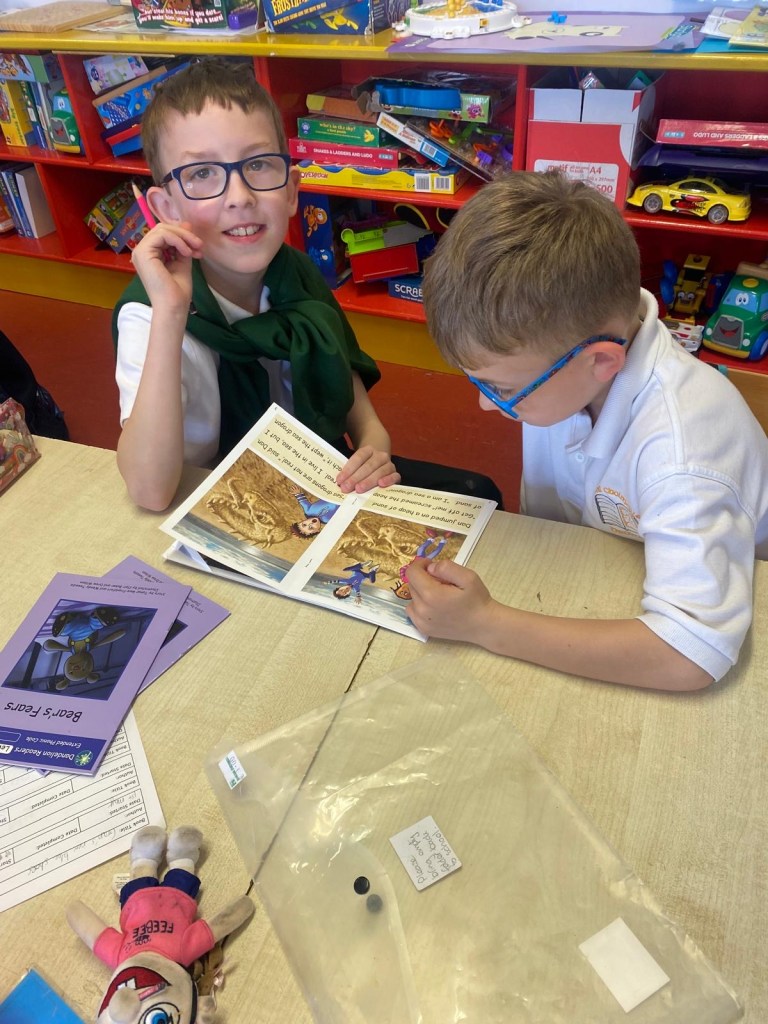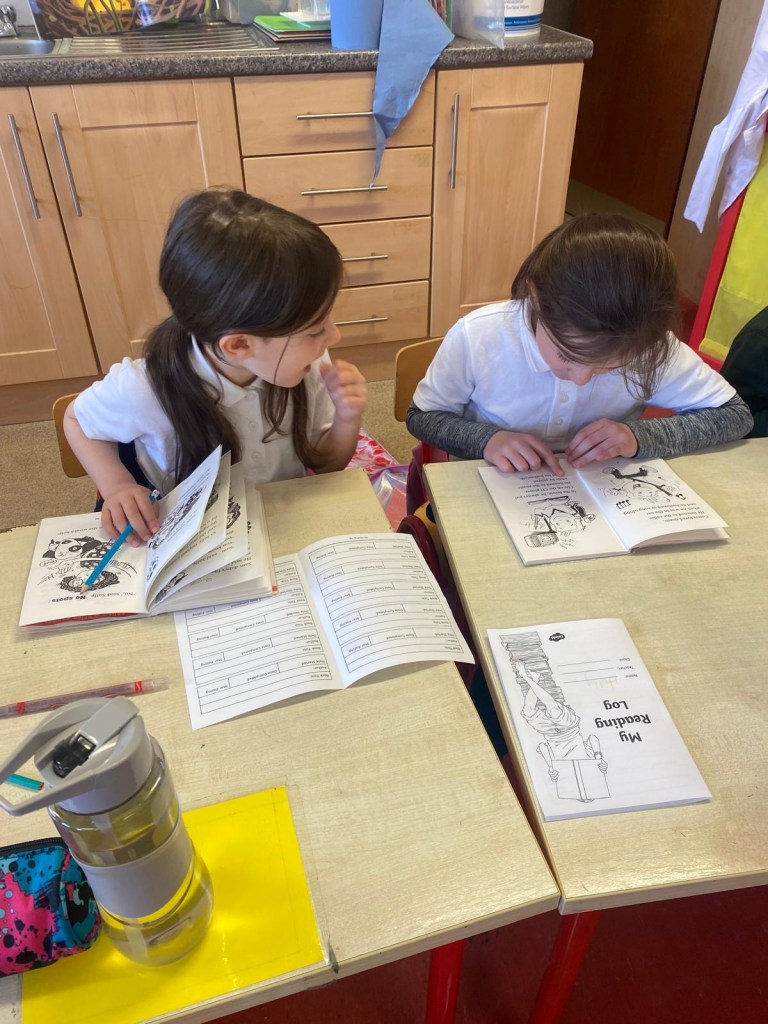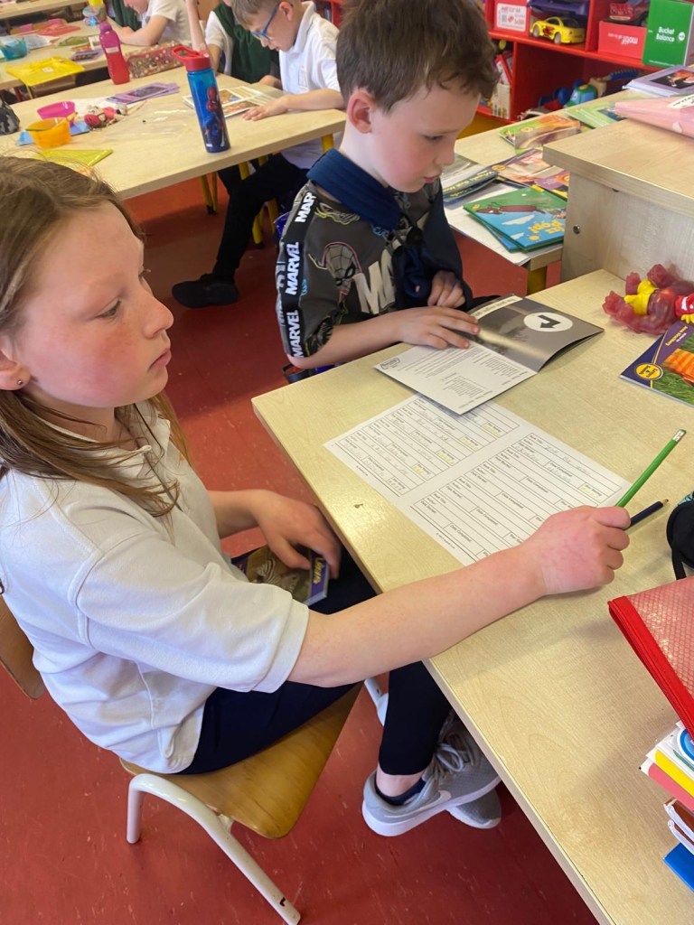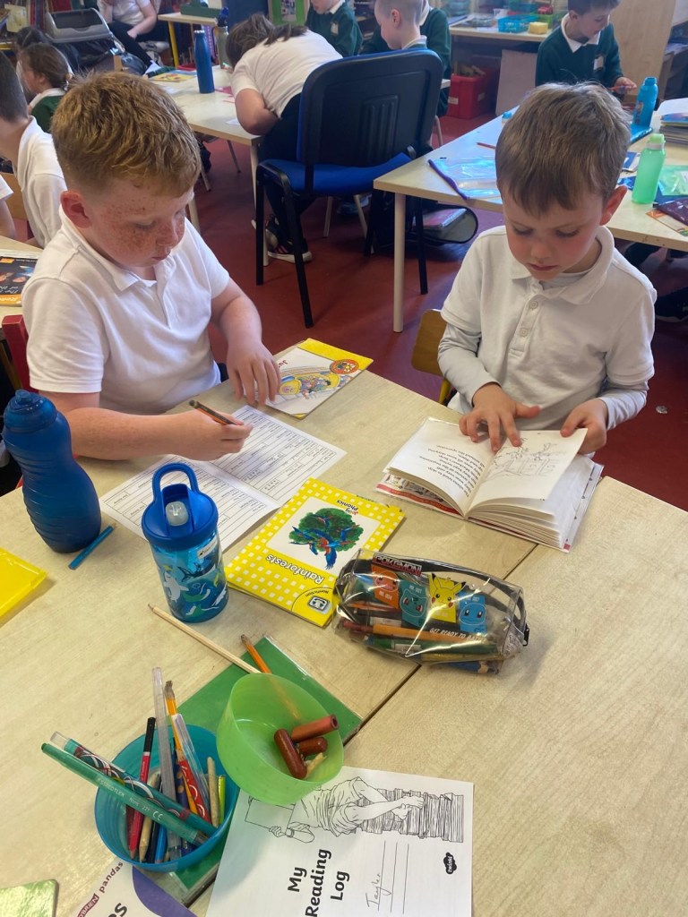 We are following the “buddy reading” programme in Drumman where older and younger students are paired up to spend time with books and read together. Buddies, buddy up in different classrooms and sit and read together.