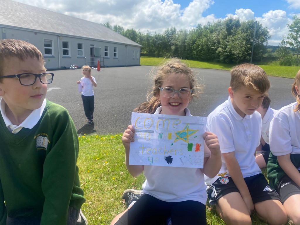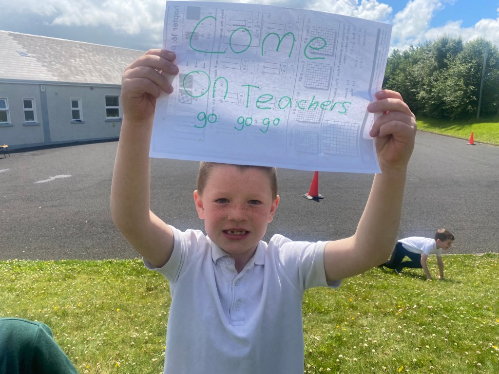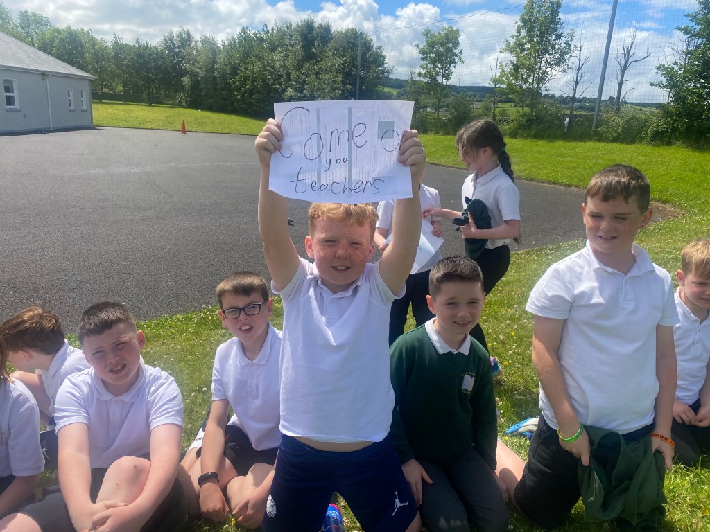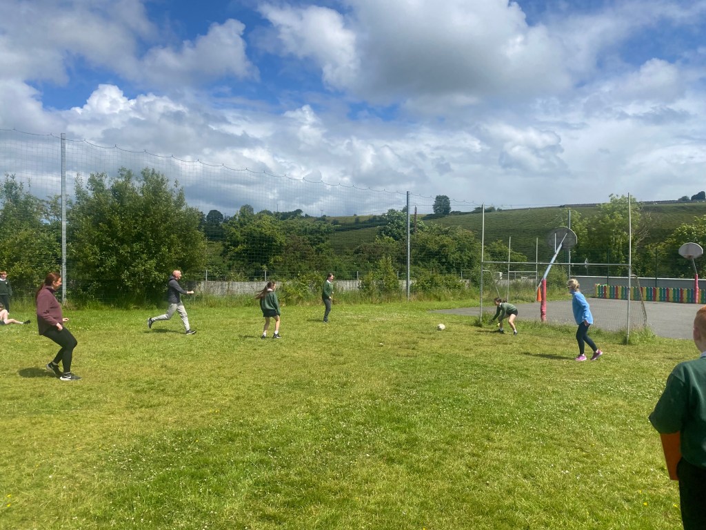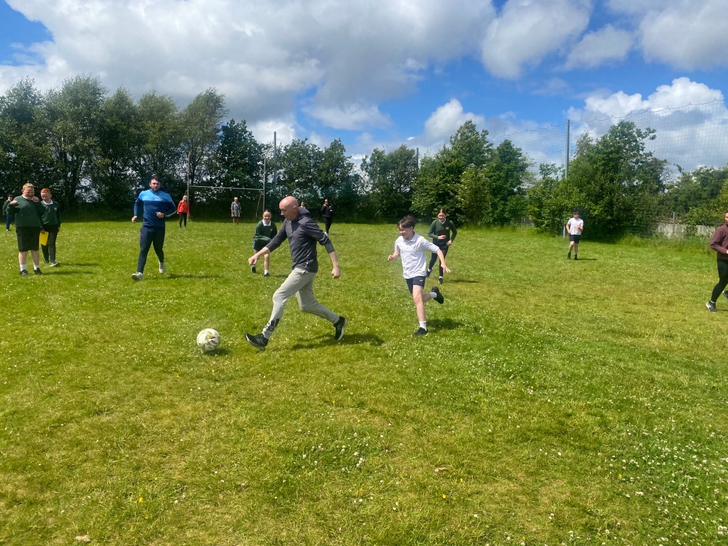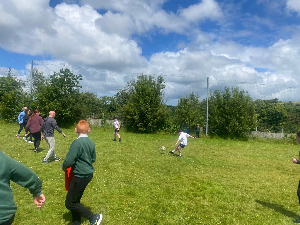 We had the Staff vs. 6th Class Football Showdown this afternoon in Drumman.