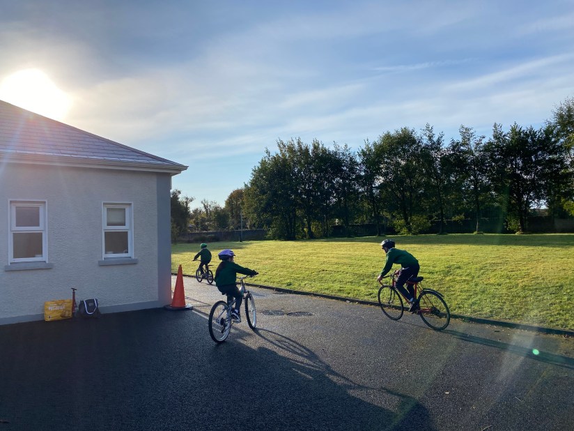 In conjunction with Triathlon Ireland, the boys and girls in fifth and sixth class took part in the Tri-Heroes programme. The programme is designed to help schools introduce triathlon activities. It teaches the basics of lifelong skills in cycling and running in a manner that inspires, motivates and challenges children.