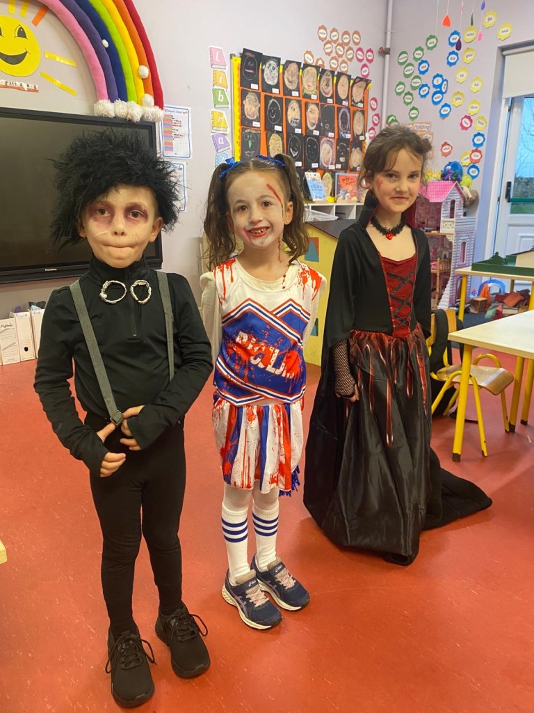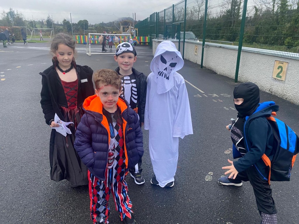 Today Drumman was a lively scene filled with Halloween spirit! The children arrived dressed in a creative mix of spooky, fun, and imaginative costumes that turned the school into a colourful Halloween celebration.