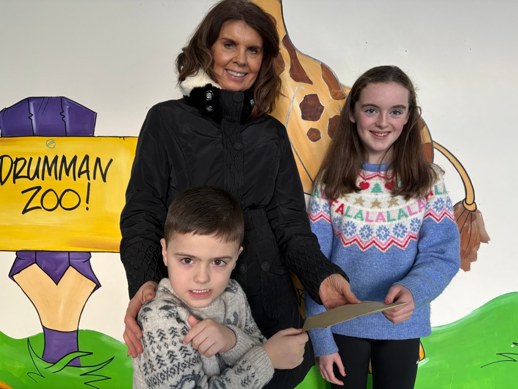 Pictured are our youngest and oldest students, Lucy and Senan, presenting the money raised to Patricia Orsi of St. Vincent de Paul.